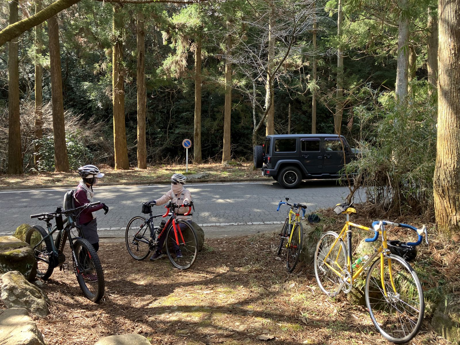 湯河原梅園入り口の少し手前で休憩中