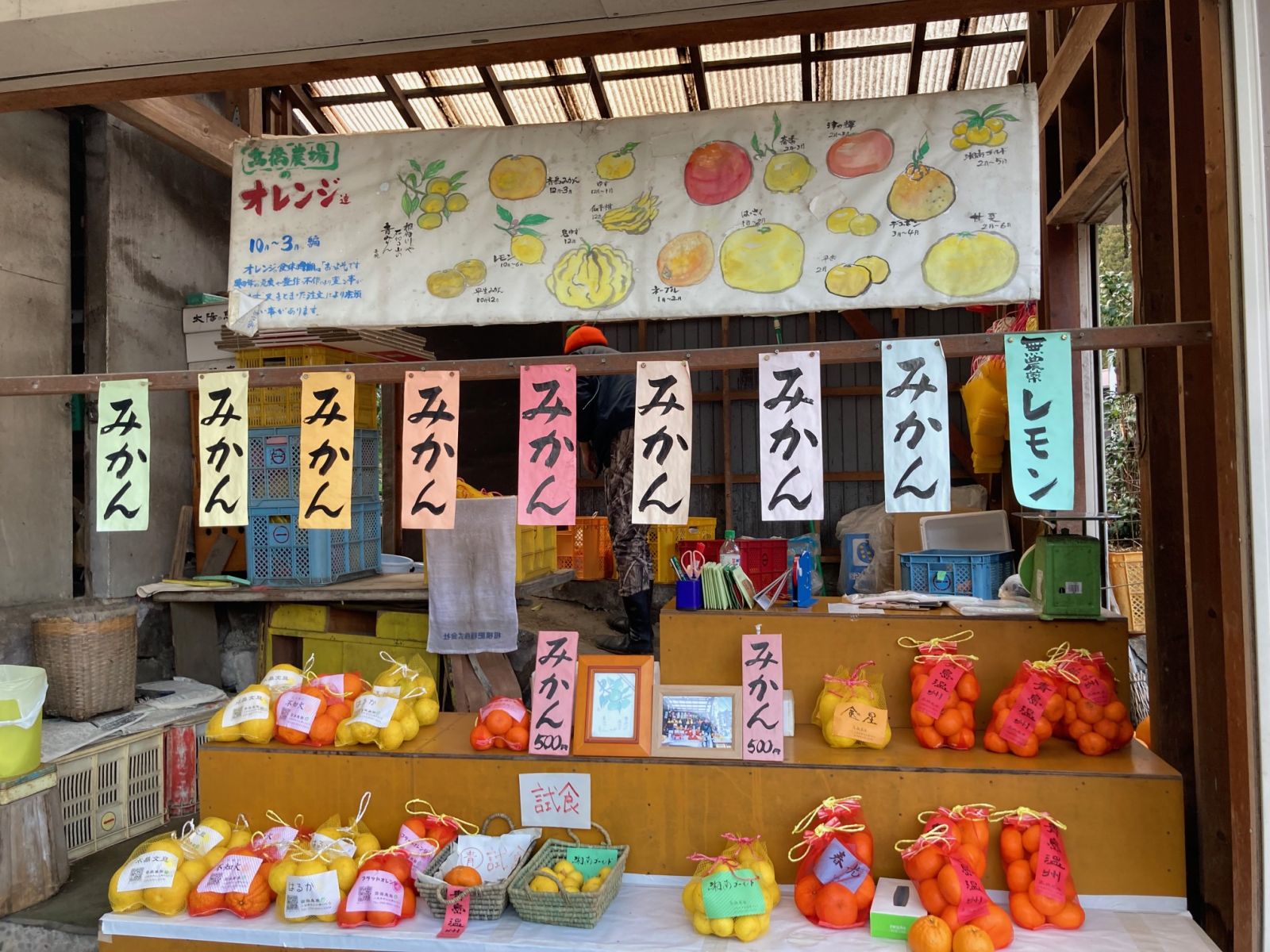 道路沿いにみかんの直販店が多くオープンしてました。